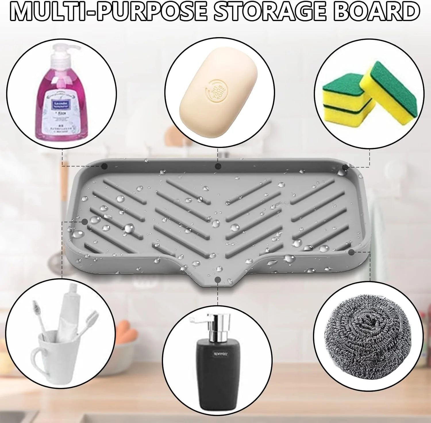 Keep your sink area clean and dry with this silicone soap tray and sponge holder. Designed with smart drainage grooves, it allows water to flow away easily so soaps and sponges dry faster. Flexible, heat-resistant, and perfect for both kitchen and bathroom use.